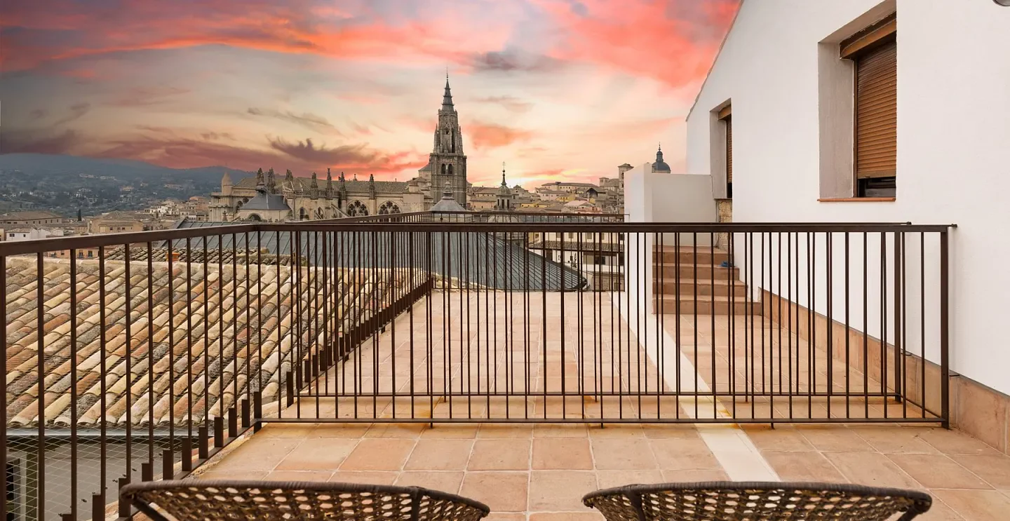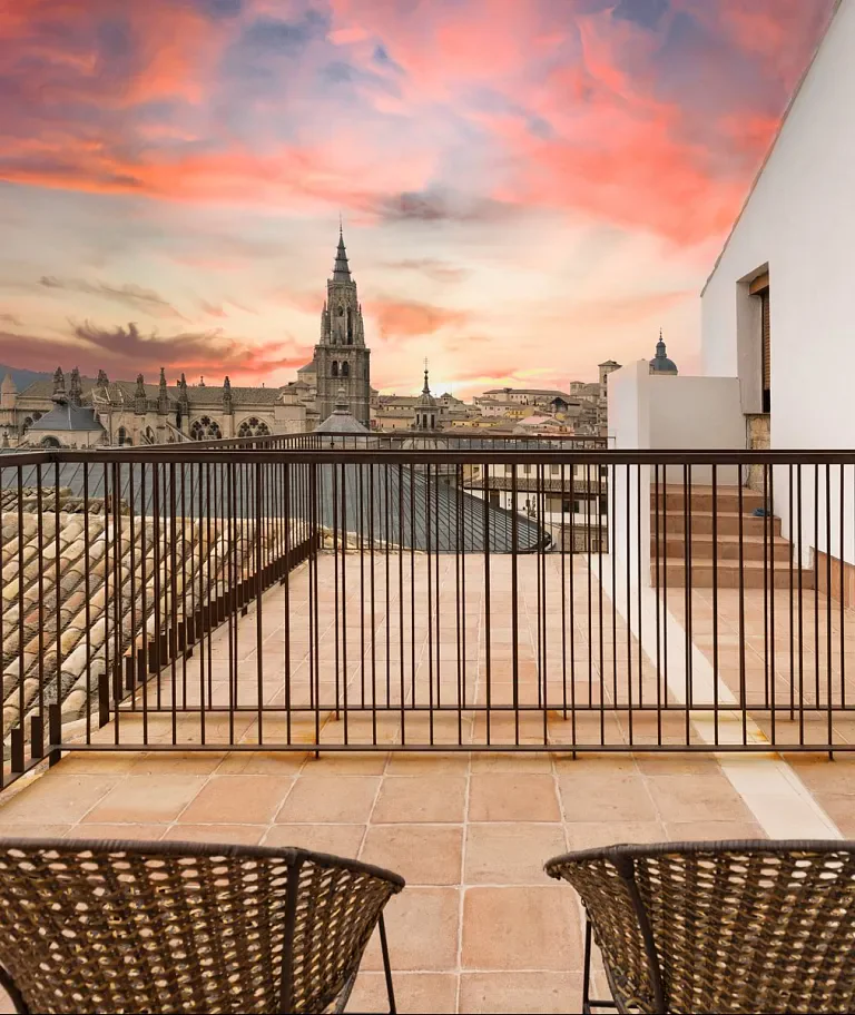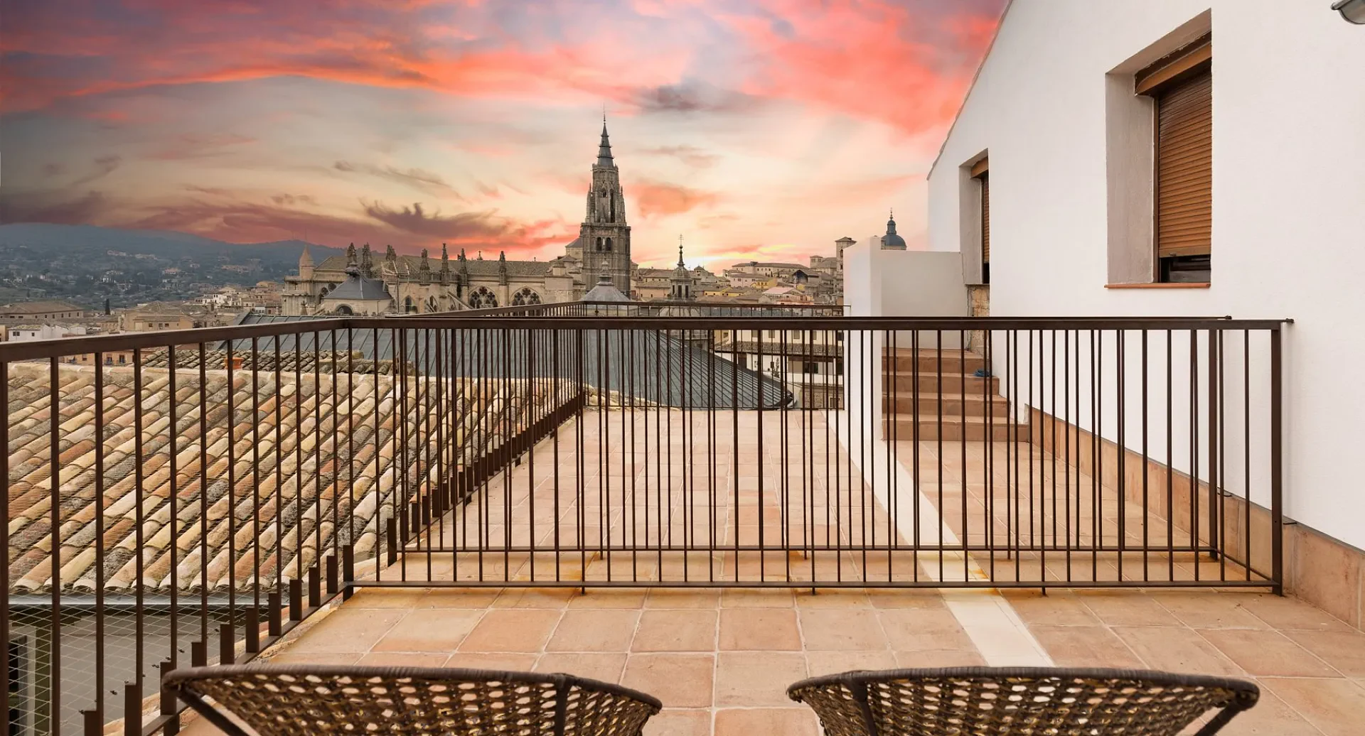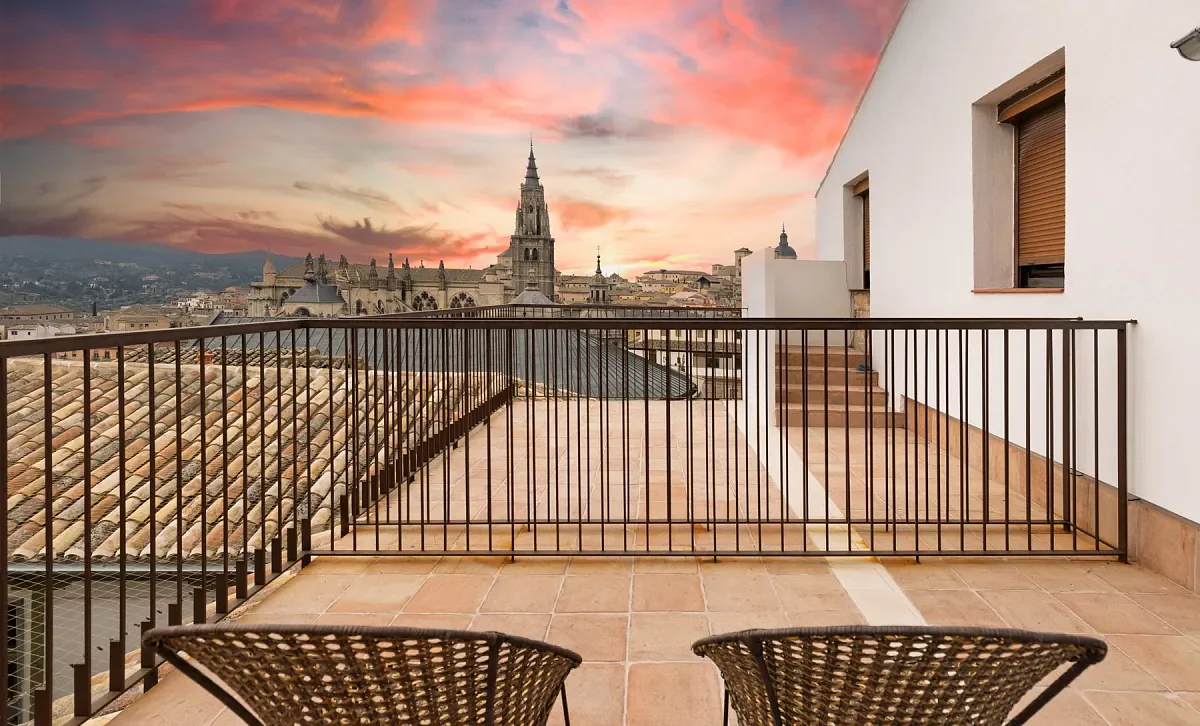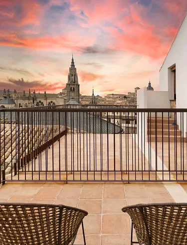 La Doble Esencia Dúplex es mucho más que una habitación: es un espacio diseñado para quienes buscan una experiencia única en Toledo. Distribuida en dos plantas, combina el descanso absoluto en su acogedor dormitorio con un salón que invita a la calma. Su joya es la terraza privada, un mirador exclusivo desde el que contemplar la ciudad en todo su esplendor. Aquí, las mañanas empiezan con el sol iluminando los tejados históricos y las noches se disfrutan con el susurro de Toledo a tus pies. Un refugio donde cada instante se convierte en un recuerdo imborrable.